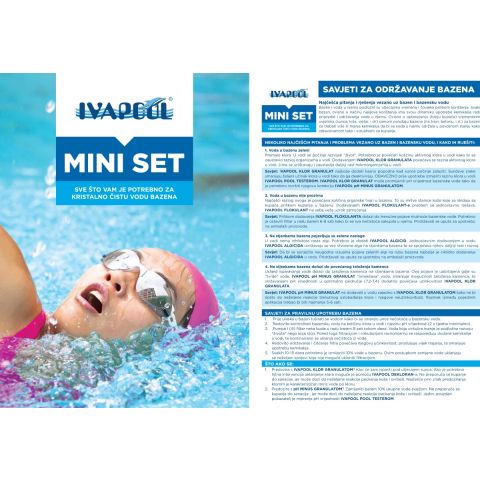 Kako bi se olakšala upotreba sredstava iz sadržaja kompleta, u IVAPOOL Miniset-u se nalaze i praktične upute za upotrebu sa savjetima kako postupiti kod raznih problema vezanih uz vodu u bazenu.