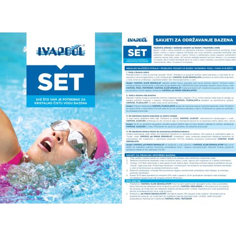 Kako bi se olakšala upotreba sredstava iz sadržaja kompleta, u IVAPOOL Set-u nalaze se i praktične upute za upotrebu sa savjetima kako postupiti kod raznih problema vezanih uz vodu u bazenu.